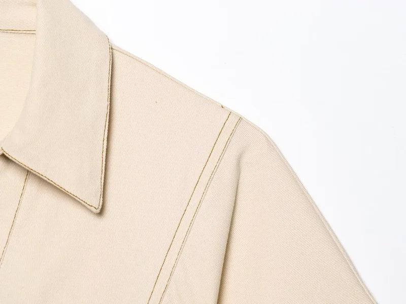 ETJ 2025 traf Spring New 1975 series denim MIDI dress with lapel side zipper fashion wrinkle waist slim elegant dress