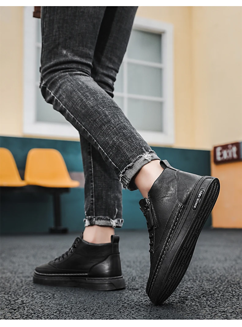 Men's boots autumn and winter new warm plush outdoor casual boots work boots fashion versatile soft soled comfort leather boots