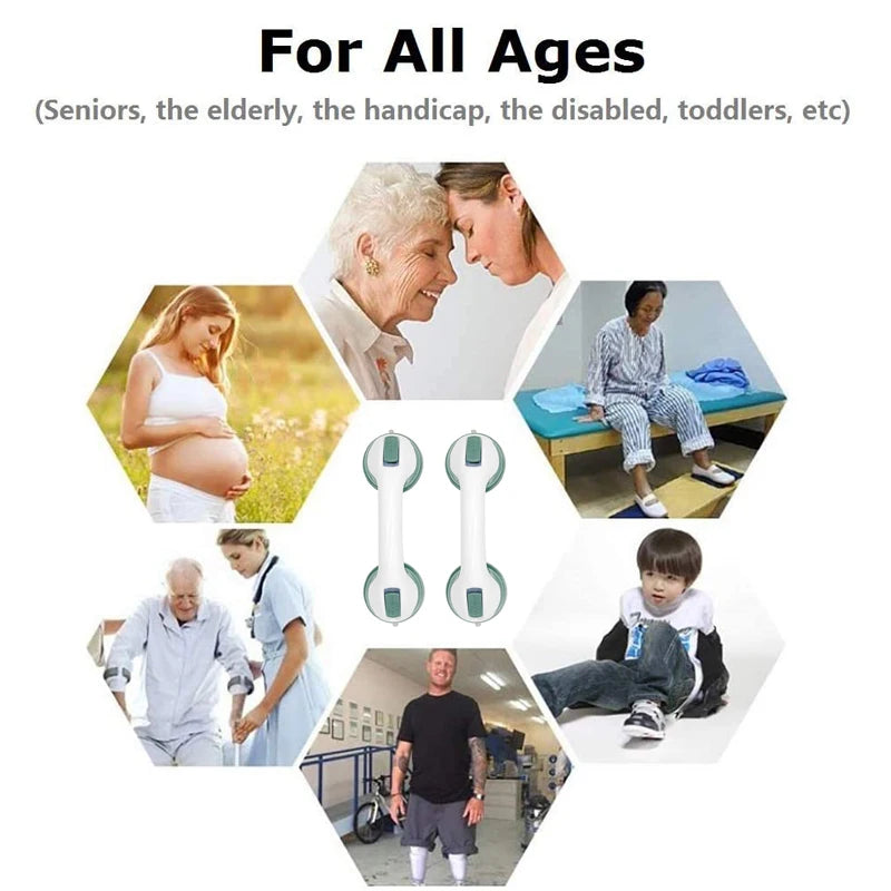 【Non-Slip Grip】Two strong suction cup design works on any bigger than 4" non-porous, flat surface, including tile, glass, acrylic and fiberglass. Perfect for senior, elderly, handicap and toddlers. The grab bar provides additional stability when entering and exiting the tub or shower for a safe and comfortable experience. Great for shaving legs, surgery recovery and preventing an injury.