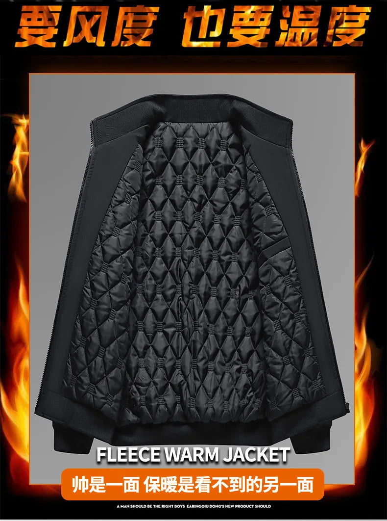 Winter Men's Fleece Warm Jackets Bomber Fashion Parkas Outerwear Coats Men Casual Windbreaker Jacket Classic Solid Thermal Coat